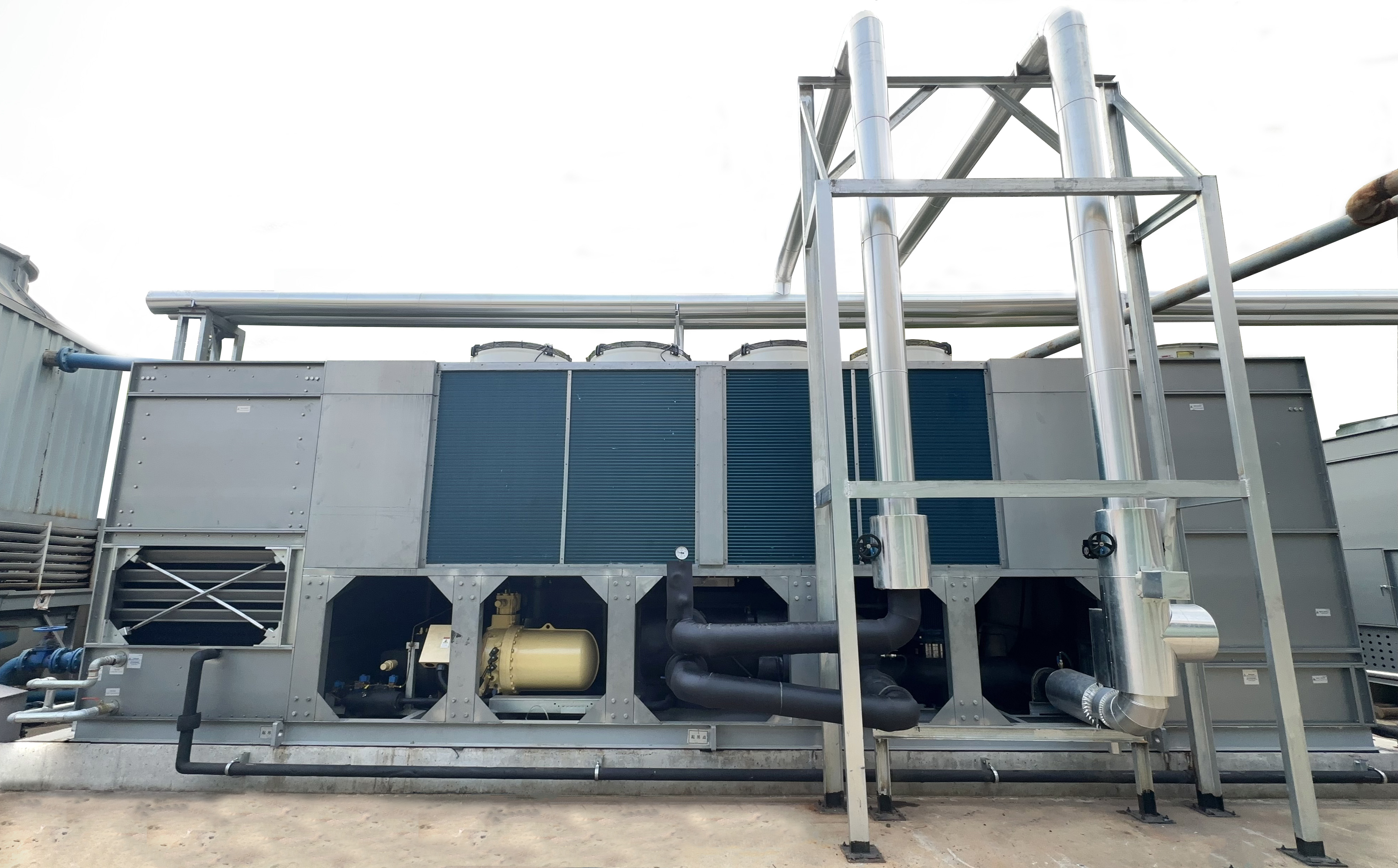 该项目采用2台JL-TEC ES-338-BHES压缩机。压缩机应用于中央空调蒸发冷一体式冷热水机组,可满足夏季制冷和冬季制热。此系统设计制冷量1100kW,设计制热量920kW,室内设计温度:22℃。